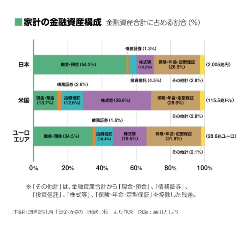 上の表からわかるように、日本人は資産の50%以上を現金・貯金で保存している。