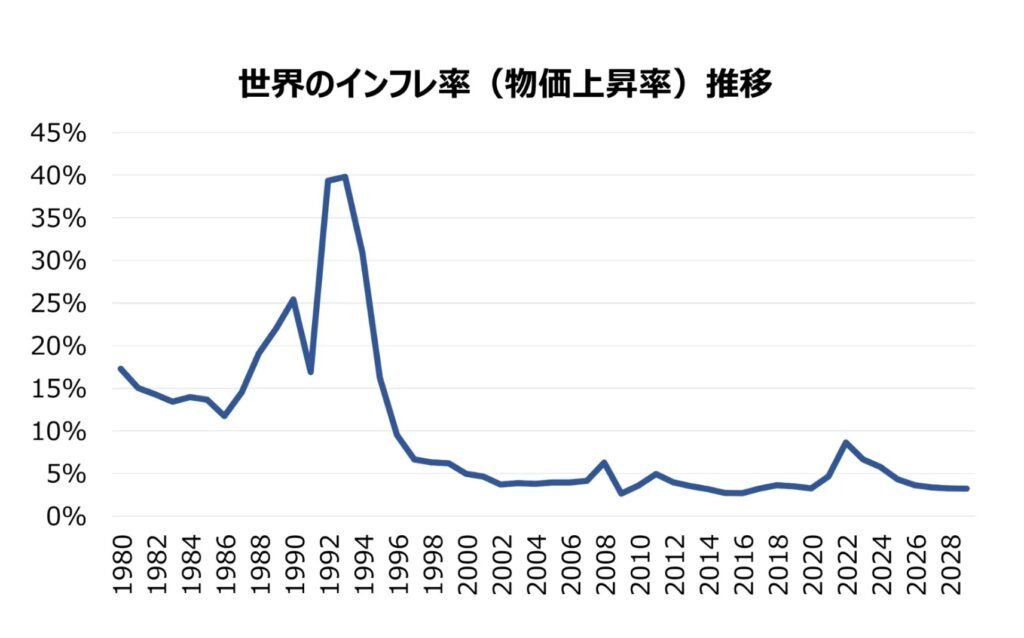 2000年以降世界は約5%ほどでインフレが起きている。つまり毎年5%ずつお金の価値が下がっているのだ。