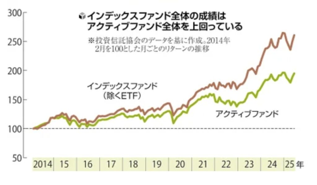 一見アクティブファンドがいいように思えるが、初心者はインデックスファンド一択だ。