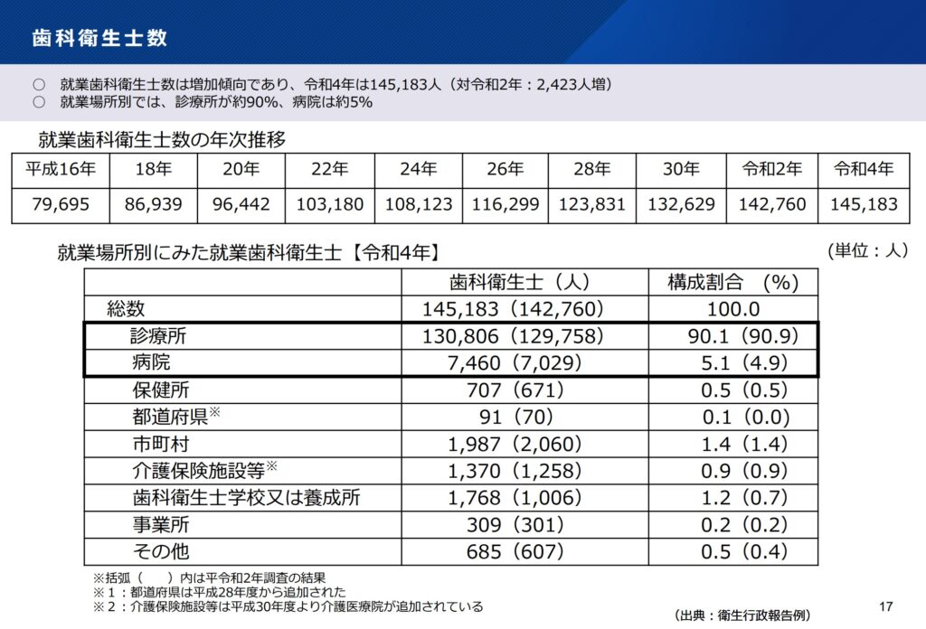 今回は現状の歯科衛生士数と今後の歯科衛生士数について考察していく。